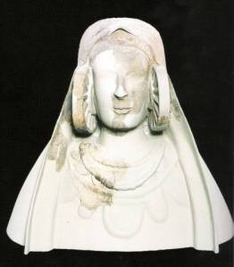 Hay un detalle importante: mientras que la Dama de Elche está prácticamente intacta (a la derecha), la Dama de Cabezo Lucero (arriba) fue destruida casi en su totalidad. Lo que ves en la imagen es una reconstrucción magnífica, a partir de unos pequeños fragmentos del lado izquierdo de la cara (los que tienen un color más oscuro) y del collar que lleva alrededor del cuello.